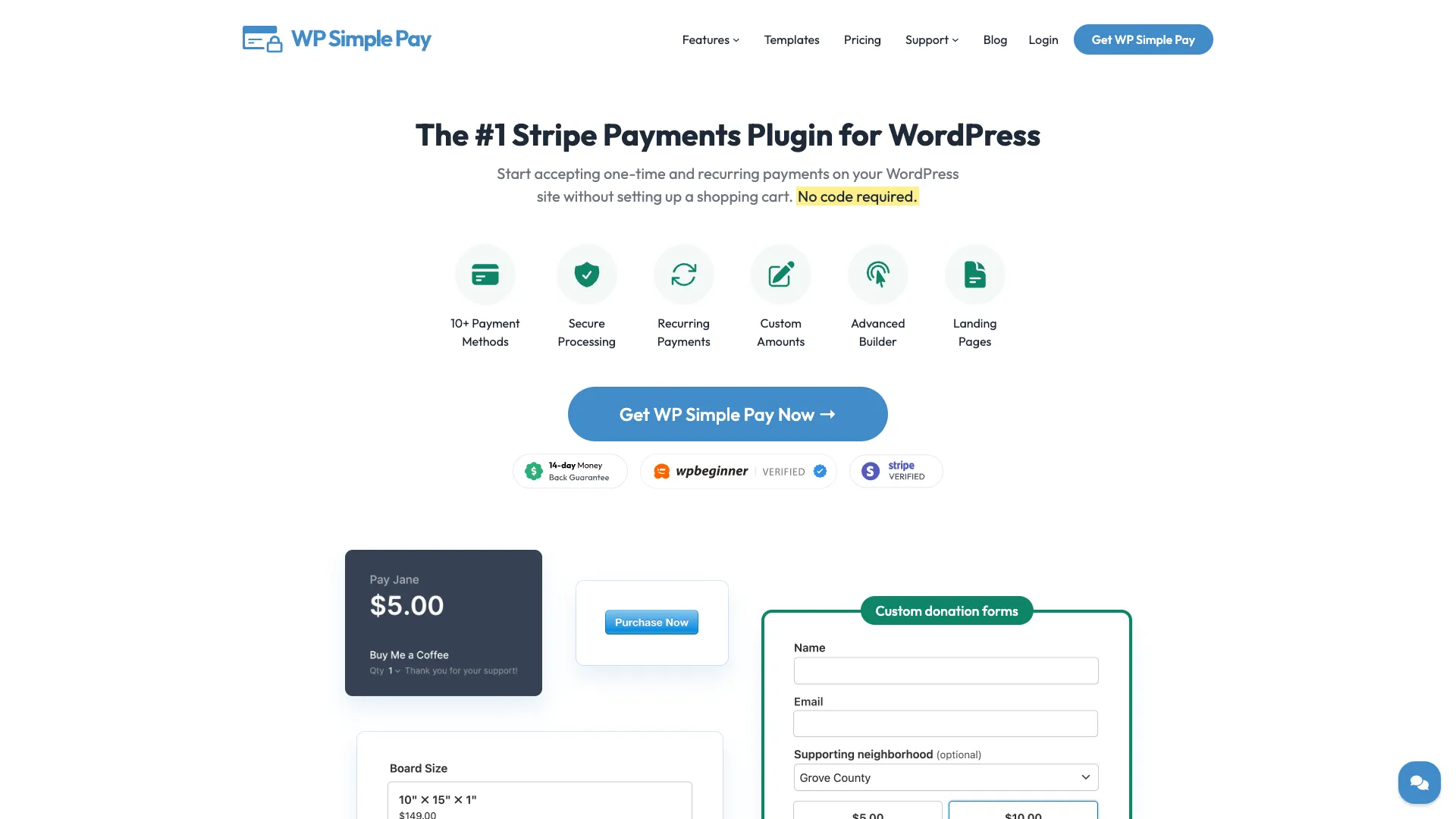WP Simple Pay is the most affordable option, starting at $49.5/mo.